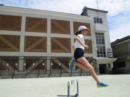 跳び方やハードル間のリズムなどを意識しながら練習しました。