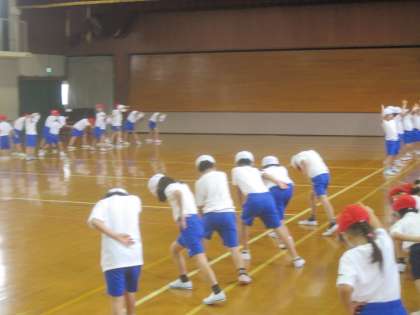 昨日に続き,体育館で運動会の団体演技の練習を行いました。多くの子どもたちが踊りを覚えられるようになってきていますので,今日から隊形の指導も始めました。踊りを覚えている子どもの中には大きく踊ることを意識している子どももいました。