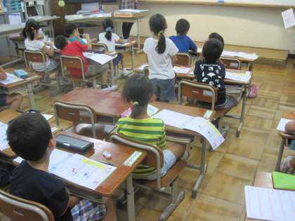 今日も漢字の学習を行いました。子どもたちは書き順や形に注意して漢字の練習をしました。学習した漢字を使った文も発表しました。