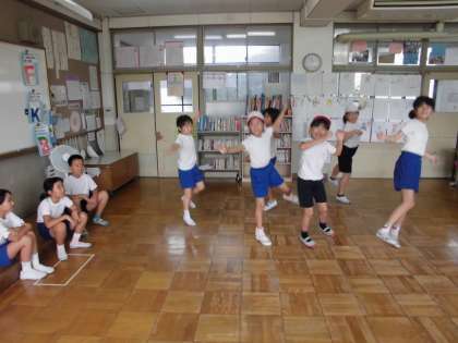 4時間は4年生だけで教室で踊っていました。