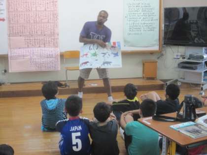 今日は6年生が科学センター学習で8時前に学校を出ていましたので,みどり・4・5年で読み聞かせをしていただきました。英語での読み聞かせでした。子どもたちは楽しくお話を聞いていました。毎週の読み聞かせを子どもたちは楽しみにしています。