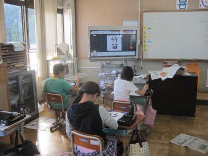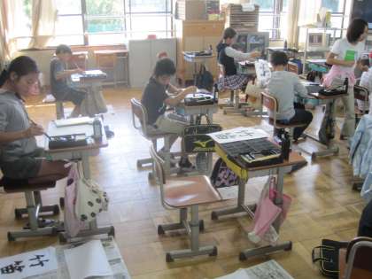 毛筆の学習をしました。「竹笛」の字を練習しました。