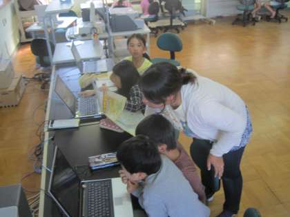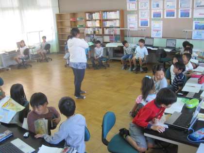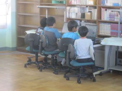 コンピュータ室で学習しました。コンピュータを使って京都の町の様子について調べました。