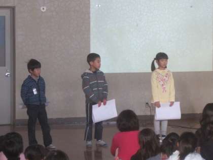1年生は初めてのプレゼンタイムを行いました。国語の学習で作った冬カルタの発表をしました。少し緊張しましたががんばって発表しました。