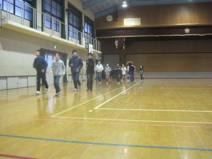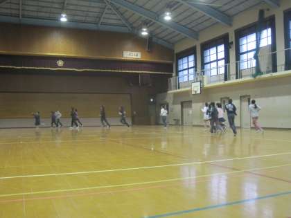 朝から雨で運動場が使えませんでしたので,陸上部は体育館で朝練習をしました。