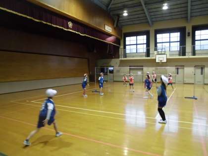 ボールを友達につなぐのはまだまだ難しいですが,つながって相手コートに