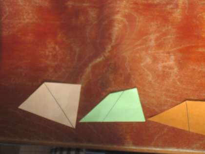 色紙で四角形を作り,四角形の特徴を調べました。調べた特徴を前にでて発表しました。