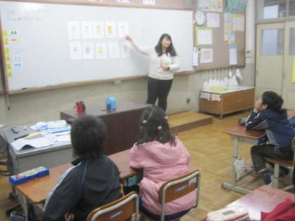 ALTの先生と一緒に外国語の授業をしました。始めに,ALTの先生が冬休みに旅行で行ったタイ,カンボジアの写真を見せながら話をしました。次にいろいろな教科名の英語での言い方をゲームを通して子ども達は慣れ親しました。最後にオーストラリアの小学校の様子をビデオで見ました。