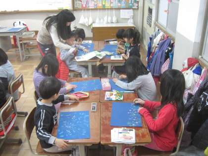 子どもそれぞれが自分の「お花畑」をイメージして描きました。