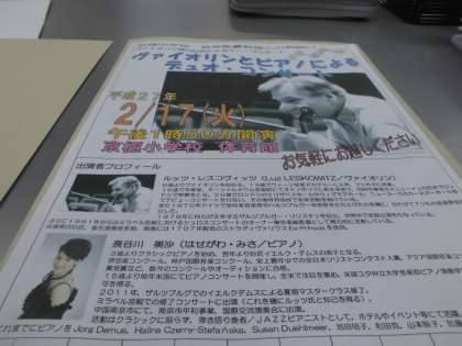 2月17日(火)の5・6時間目に,バイオリンの巨匠が京極小に来校されます。