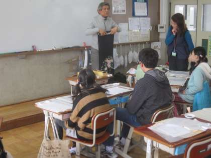 今日は友禅染の専門家にお越しいただきました。まず,実際の友禅染を見せていただき、その後話をしていただきました。
