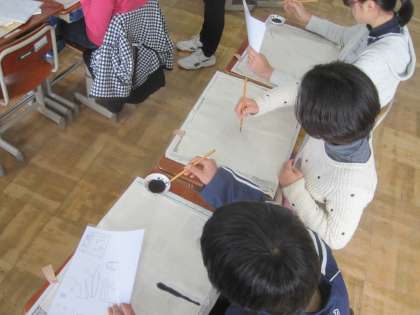 今年の6年生の卒業記念制作は友禅染で作品を作っています。