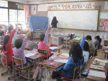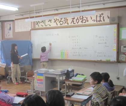 進んで手を挙げて発表したり,答えをホワイトボードに書いたりしている子どもが沢山いました。