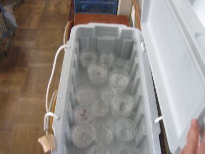もののとけ方の単元でミョウバンを使って結晶作りをしています。