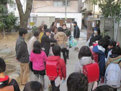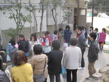 今年の4年生は人数が多くないので,毎月のフラワープレゼントには全員で手分けしてお花をもって行きました。