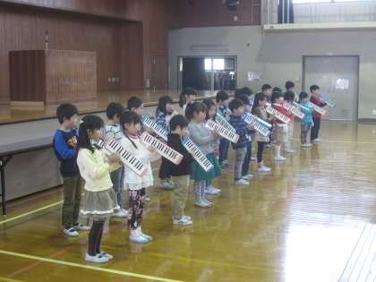 お迎えの言葉,歌,鍵盤ハーモニカの練習をしました。