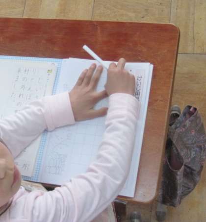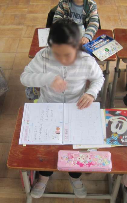 子どもたちは鉛筆で一画一画丁寧に書きました。