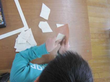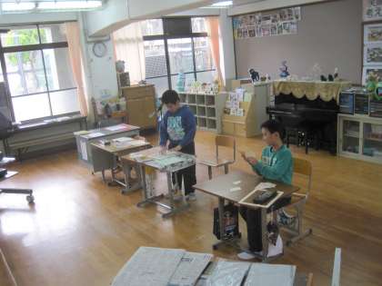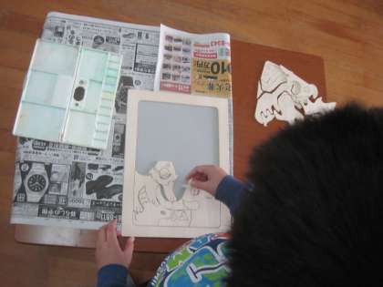 一人は紙やすりできれいに削ってから色を塗りました。丁寧に削り滑らかに仕上げていました。