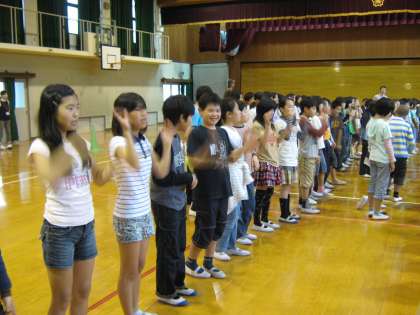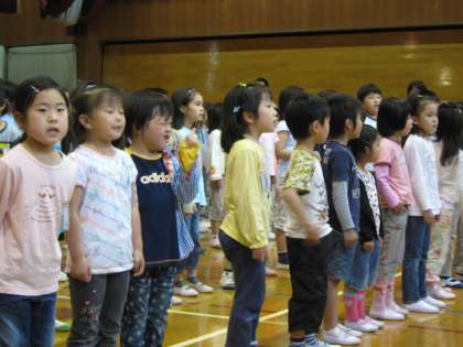 1年生をむかえる会を児童会が中心となって行いました。1年生も、自分の名前や好きな教科や食べ物を全校児童の前で、元気に発表しました。その後、ゲームや歌で1年生の入学をお祝いしました。