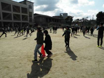 業間体育では,みんながしっかり走れるように,少し変化をつけました。