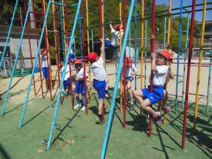 のぼり棒のてっぺんを目指しています。