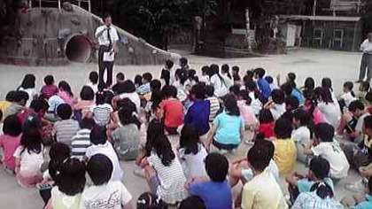 避難訓練がありました。今回の訓練は、不審者を想定した訓練でした。訓練でしたが、子どもたちは真剣な表情で参加していました。運動場に整列したあと、校長先生より講評していただきました。