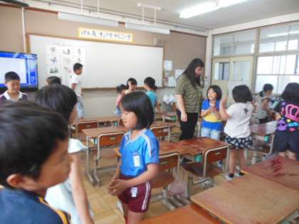子どもたちは上手にまねて発音していました。