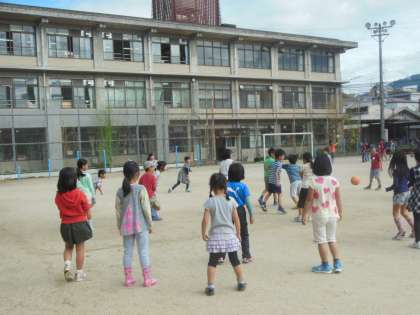 今日のみんな遊びはドッジボール。