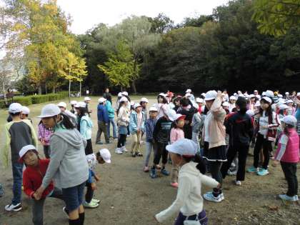 少し肌寒い中,全校遠足で宝ヶ池公園に行きました。