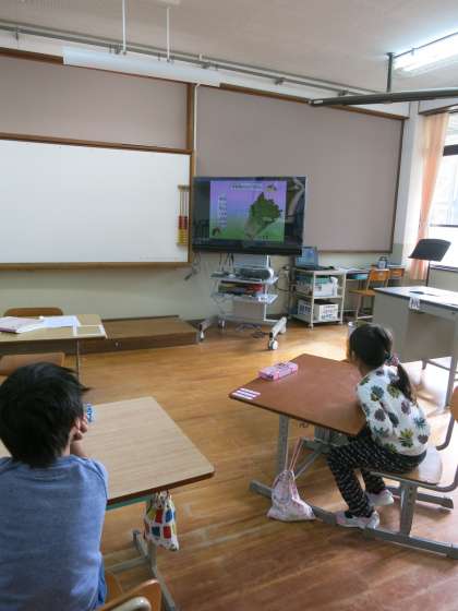 朝の会で,和献立の説明ビデオを見て,「おいしそう!」
