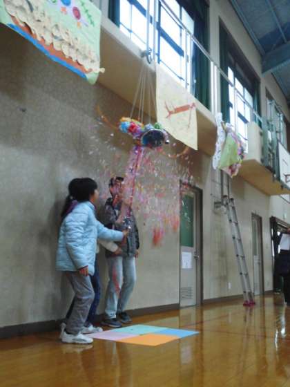 去年,模造紙で飾りをつくり,くす玉をつくり,