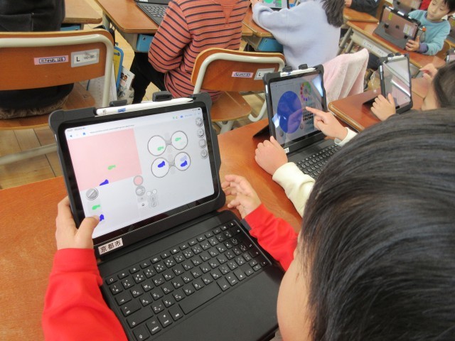 1枚目は体育科「パスゲーム」でボールをつないでシュートまでを練習しました。次のゲームが楽しみだね。2枚目は「クイズがかり」さんが図書館でクイズを調べて、みんなにクイズを出してくれました。3枚目は、「ビスケット」というアプリを使って自分がかいた絵を動かしました。動かし方を考えるのが楽しかったようです。