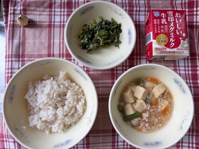 また、同じ材料でも混ぜ方や火の強さでそぼろの大きさや食感が変わるので、家庭によって味わいが違うのも面白いところです。今日の「高野豆腐のそぼろ煮」には、鶏ひき肉や玉ねぎ、人参、三度豆が入っています。