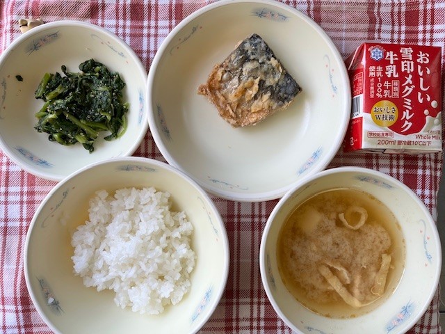 今日は「さばのたつたあげ」を紹介します。「さばのたつたあげ」は、子どもたちに人気の献立の一つです。しょうが・料理酒・しょうゆに30分ほど漬けて下味をつけてから、油で揚げます。