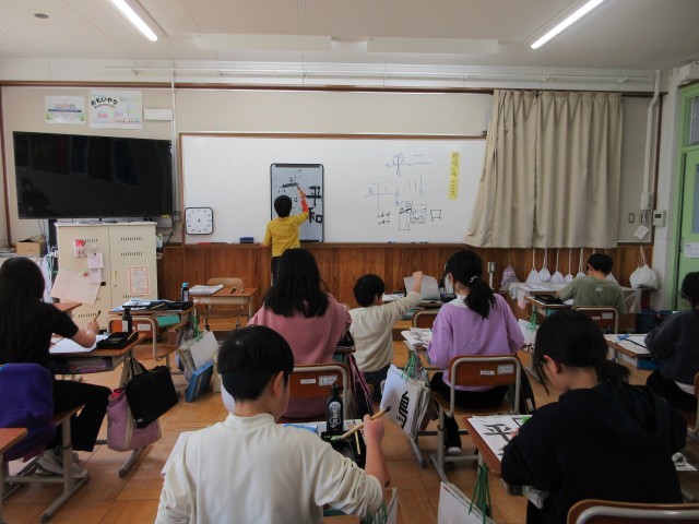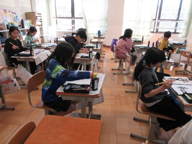 今日は最後の書写でした。縦画、横画、接している所、へんとつくり等に気をつけて「平和」とかきました。「平」の書き順を間違えて覚えていたと言っていました。