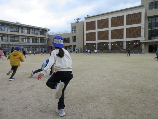 体育科はグループで準備体操をして、なわとびで色々な跳び方に挑戦しました。今日は遊び係は、「かわりおに」をしようと声をかけてくれました。