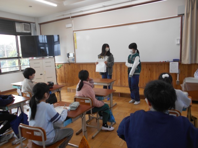 6年生が家庭科の学習で作ったぞうきんを、各学年にプレゼントしてくれました。