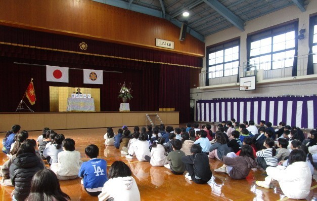 今日の1校時に令和7年度修了式を行いました。校歌斉唱の後、5年生代表児童が修了証を受け取りました。校長先生の話で学校教育目標の「きようごく」を振り返りをしました。保護者の皆様、地域の皆様には、1年間、本校教育にご理解、ご協力いただきましてありがとうございました。令和8年度もどうぞよろしくお願いいたします。