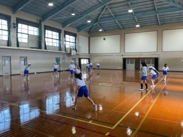 体育科「体ほぐし」 では、ペアで手をつないでバランスをとる動きに挑戦しました。その後、ペアでフラフープを回したり転がしたりして、楽しみながら体をほぐしました。1年間、いろいろな運動にチャレンジしていきます!