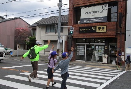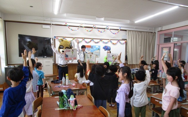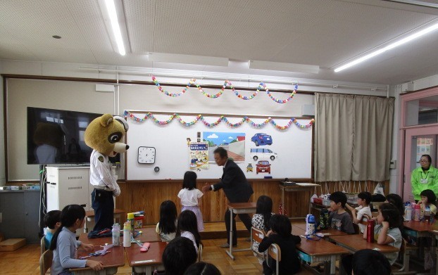1年生の交通安全教室を行いました。今年度は「かみぎょうぽんたくん」も来てくれ、上京警察署の方から「いかのおすし」の合言葉の確認や横断歩道の渡り方などについてお話を聞きました。その後、実際に外に出て、通行の実習をしました。今日は、上京警察署の方や上京地域交通安全活動推進委員の方々にお世話になりました。ありがとうございました。