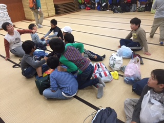 90畳の和室では,お風呂の順番を待っている子どもたちが楽しそうに友だちとおしゃべりしたりジャンケンをしたりして和やかにくつろいでいます。