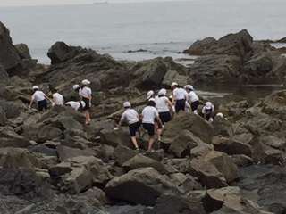 もっともっと生き物たちと触れ合っていたいけど,だんだん潮が満ちてきて,子どもたちがよじ登っていた岩場が,次第に海の中に見えなくなっていきました。