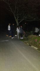 ナイトハイクが始まりました。ドキドキしながら,グループで夜の道を歩きます。頼りの懐中電灯は,グループに2つという約束です。みんなで,身を寄せ合って進みます。