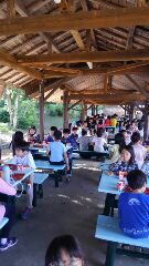 メニューは,卵焼きです。わくわくタイムに備えて,しっかりと食べておきましょう。おしゃべりに夢中になって,トンビにパンをさらわれてしまわないようにね!