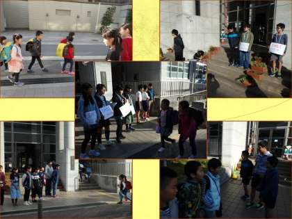 最終日には,たくさんの6年生が校門に来て,元気いっぱいのあいさつをしてくれました。その声に,他の学年の子どもたちも元気いっぱいのあいさつで返していました。