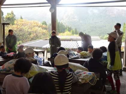 主事先生が,「みんなで声を掛け合って登っている姿がすてきでした。」と,ほめてくださいました。歩いてきた山々の稜線を再び見て,みんな感動していました。「また,行きたい人?」との主事先生からの問掛けにたくさんの子どもたちが,手を挙げていました。