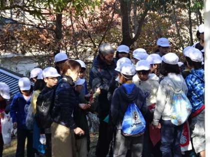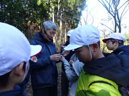 小寺先生をゲストティーチャーに迎えて,秋晴れの所内を散策し,たくさんのキノコを発見しました。先生も「めずらしいのを見つけたね。」とおっしゃってくださるようなキノコを発見して,大喜びの子どもたちでした。一つ一つ名前をたずねては,丁寧に教えていただいていました。