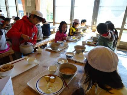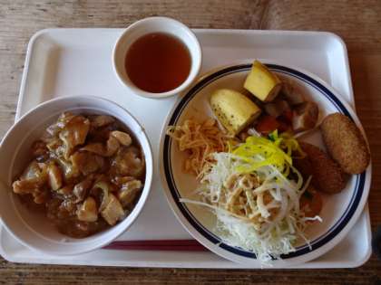 とうとう山の家での最後の食事となりました。本日,食堂での昼食は,鶏丼かラーメン(小ごはん付)の2択でした。とっても迷った子どもたちでしたが,しっかり食べて,振り返りに臨みます。