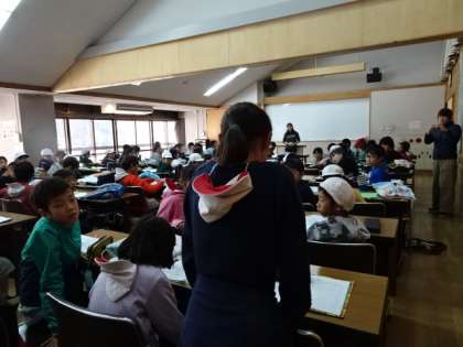 4日間のふり返りをしました。4日目のテーマは「感謝」です。「協力」「挑戦」「友情」の3つが,「感謝」に結びついていることに,みんな気が付きました。少し手を挙げるのが苦手な子も,思い切って発表できました。みんなに,思いを伝えてくれてありがとう。