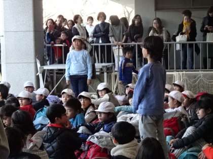 とうとう学校に到着しました。たくさんのおうちの方や教職員に迎えられて嬉しそうな5年生です。地域の先生からも,みんなのがんばりをほめていただきました。また,6年生に向けて一層みんなで協力し,いろいろなことに挑戦して友情を深め,その中で感謝の気持ちをもってほしいというメッセージが伝えられました。